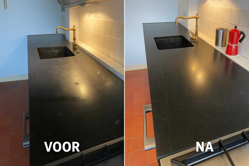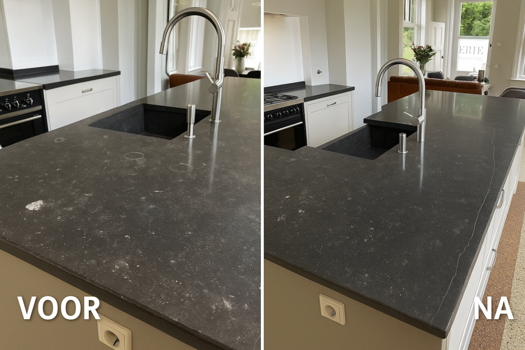 Uw natuurstenen aanrecht weer als nieuw – professioneel hersteld, beschermd en verfraaid.