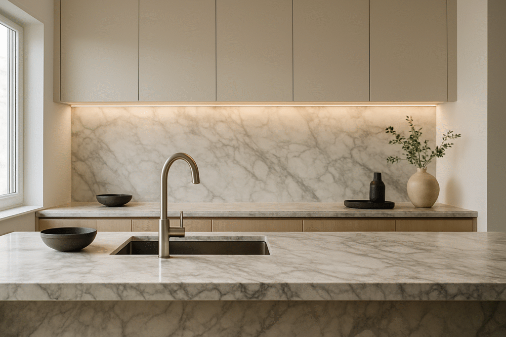 Wij zijn gespecialiseerd in het renoveren, reinigen, polijsten en beschermen van aanrechtbladen van onder meer marmer, Belgisch hardsteen en terrazzo — gewoon bij u thuis, zonder demontage of onnodige overlast.